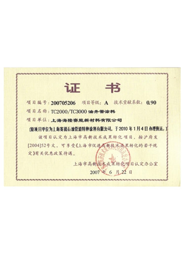 Achieved outstanding results in a number of scientific researches and won the title of Industry-University-Research Cooperation Demonstration Enterprises and the Excellent University-Industry-Research Cooperation Project Award through the cooperation with Fudan University, East China University of Science and Technology and Shanghai University in carrying out a lot of university-industry-research cooperation projects, including post-doctoral moblie workstations, the research on anti-hydrogen sulfide pipe coatings for the natural gas development system, the high-performance maleic anhydride grafted PE adhesive production technology, and the development preparation and application of PE anti-corrosion material for long transmission pipelines in permafrost.