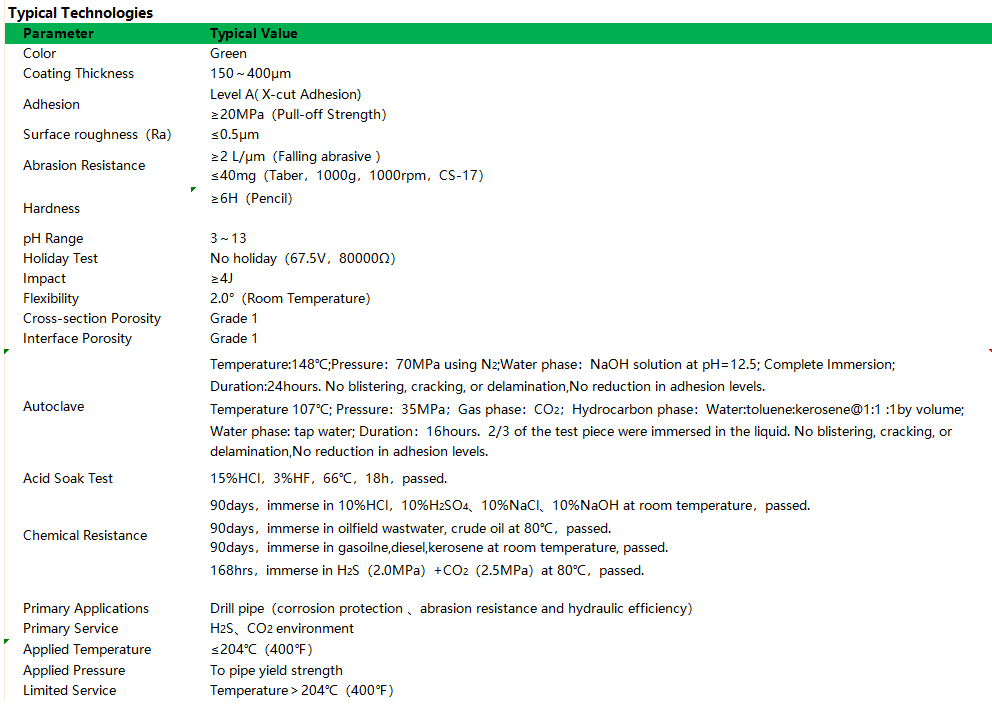 A powder-applied, hydrogen sulfide-resistant internal coating for drill pipe, primarily designed for high-temperature, high-pressure environments containing H?S and CO?.