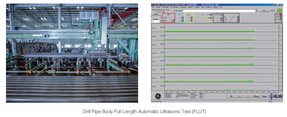 ·Pipe body100%MFL, 100% FLUT (longitudinal, transverse, oblique ultrasonic testing + ultrasonic thickness measurement) + 100% pipe end MPI (or UT), drill pipe tool joint 100%UT+100%MPI, welding zone 100%UT+100% MPI.