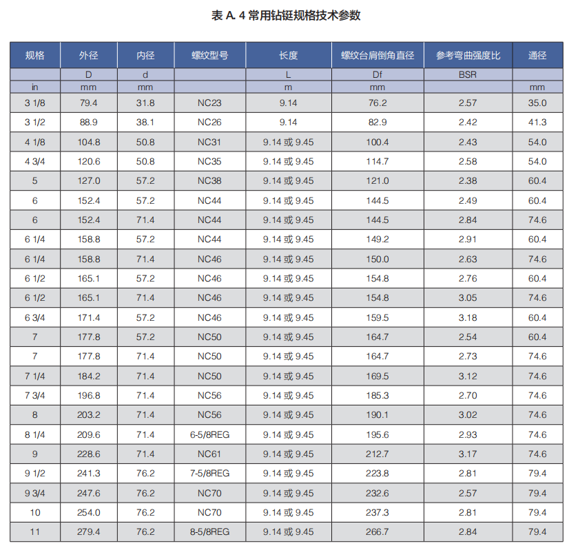 (c)鉆鋌規范: API Spec 7-1、API Spec 7-2、API RP 7G;